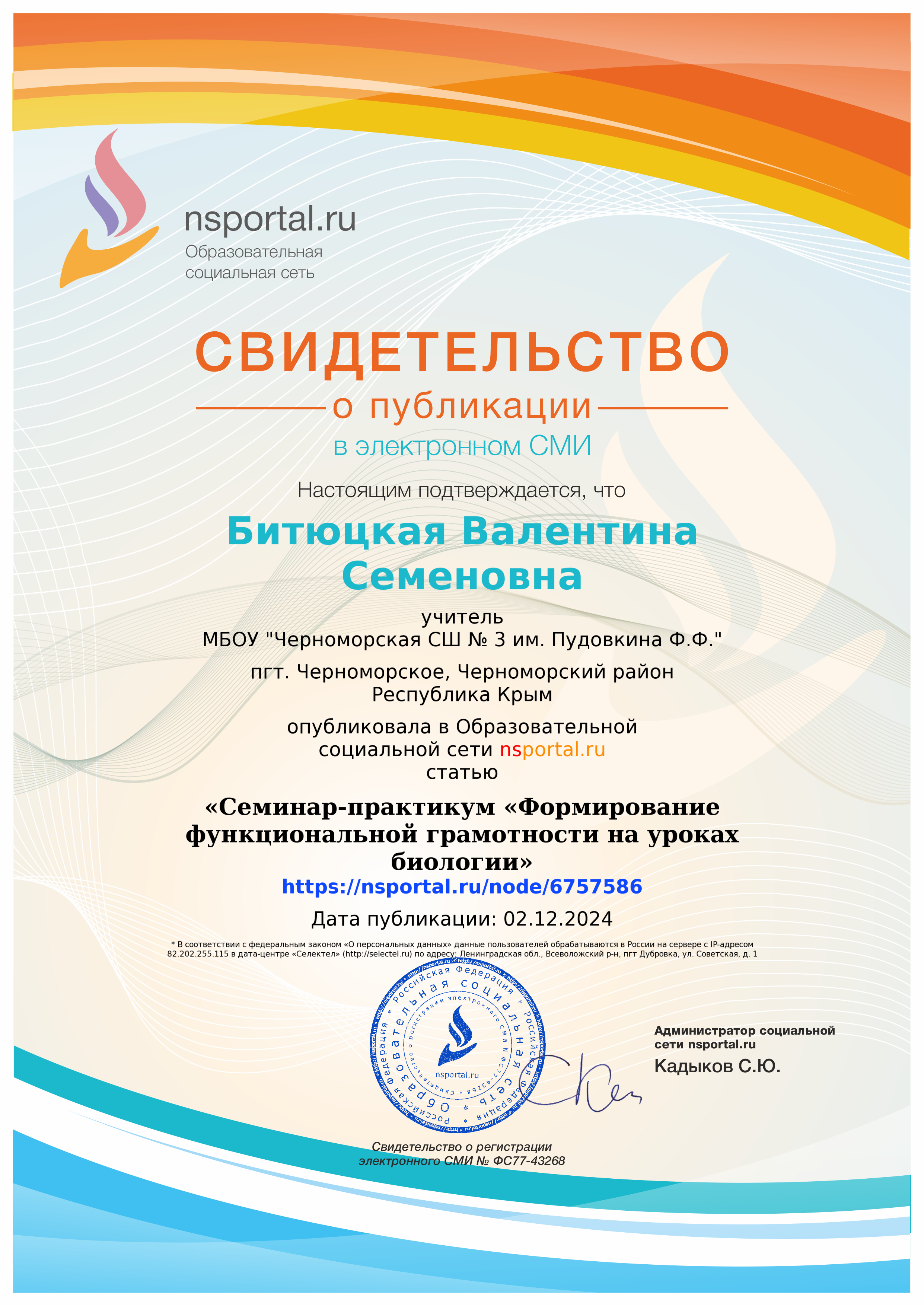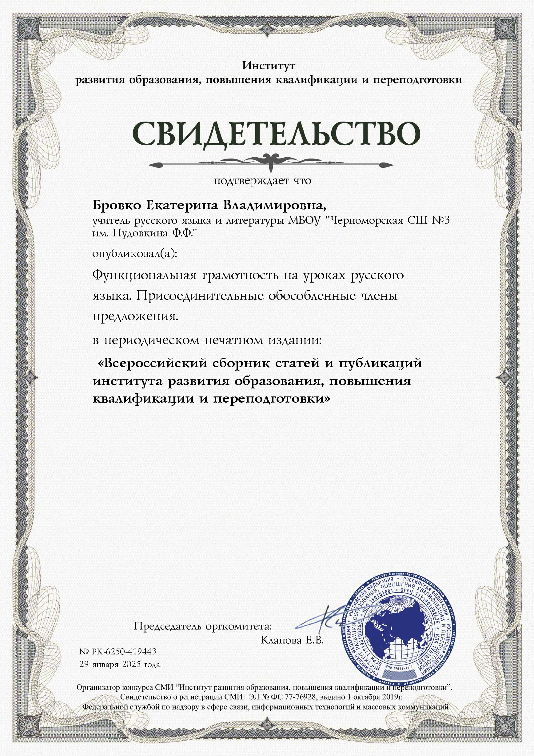 Муниципальное бюджетное общеобразовательное учреждение «Черноморская средняя школа №3 имени Пудовкина Фёдора Фёдоровича» муниципального образования Черноморский район Республики Крым