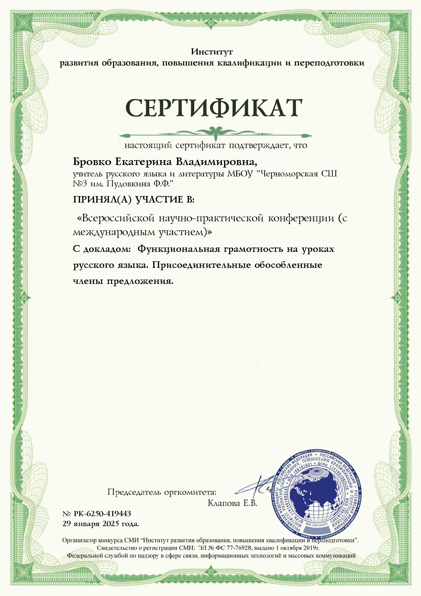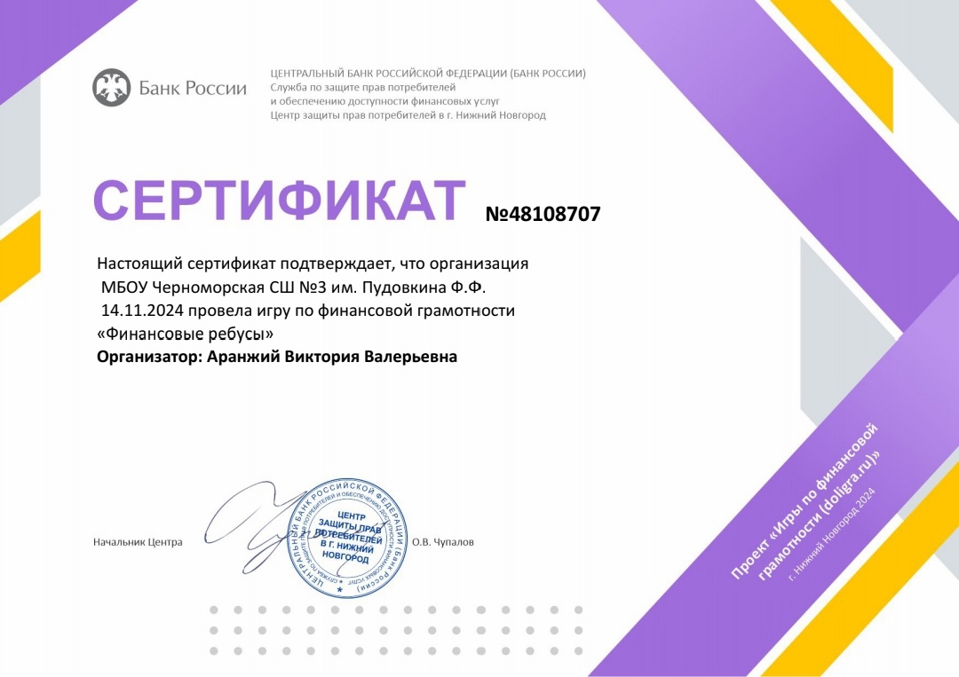 МБОУ «Черноморская СШ№3 им. Пудовкина Ф.Ф.»