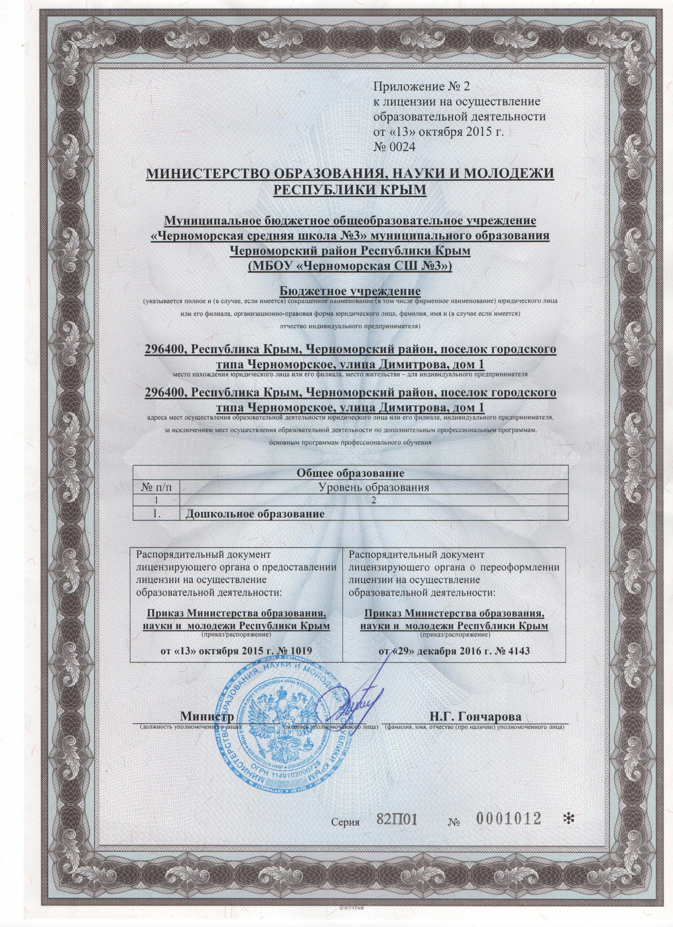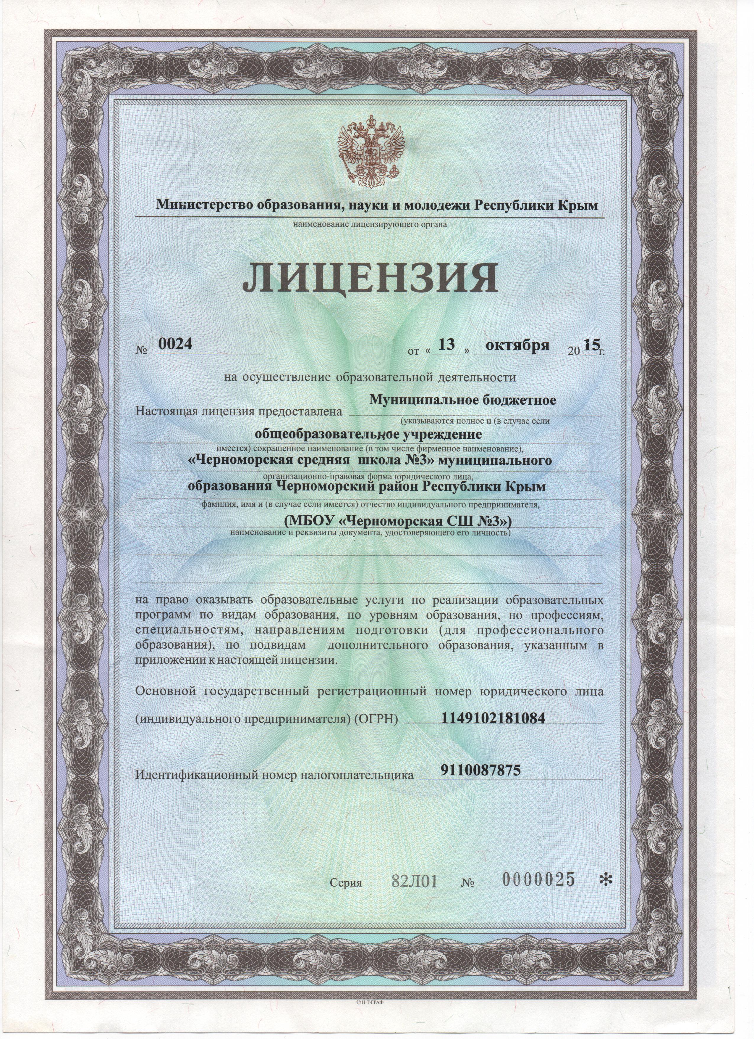 Муниципальное бюджетное общеобразовательное учреждение «Черноморская средняя школа №3 имени Пудовкина Фёдора Фёдоровича» муниципального образования Черноморский район Республики Крым