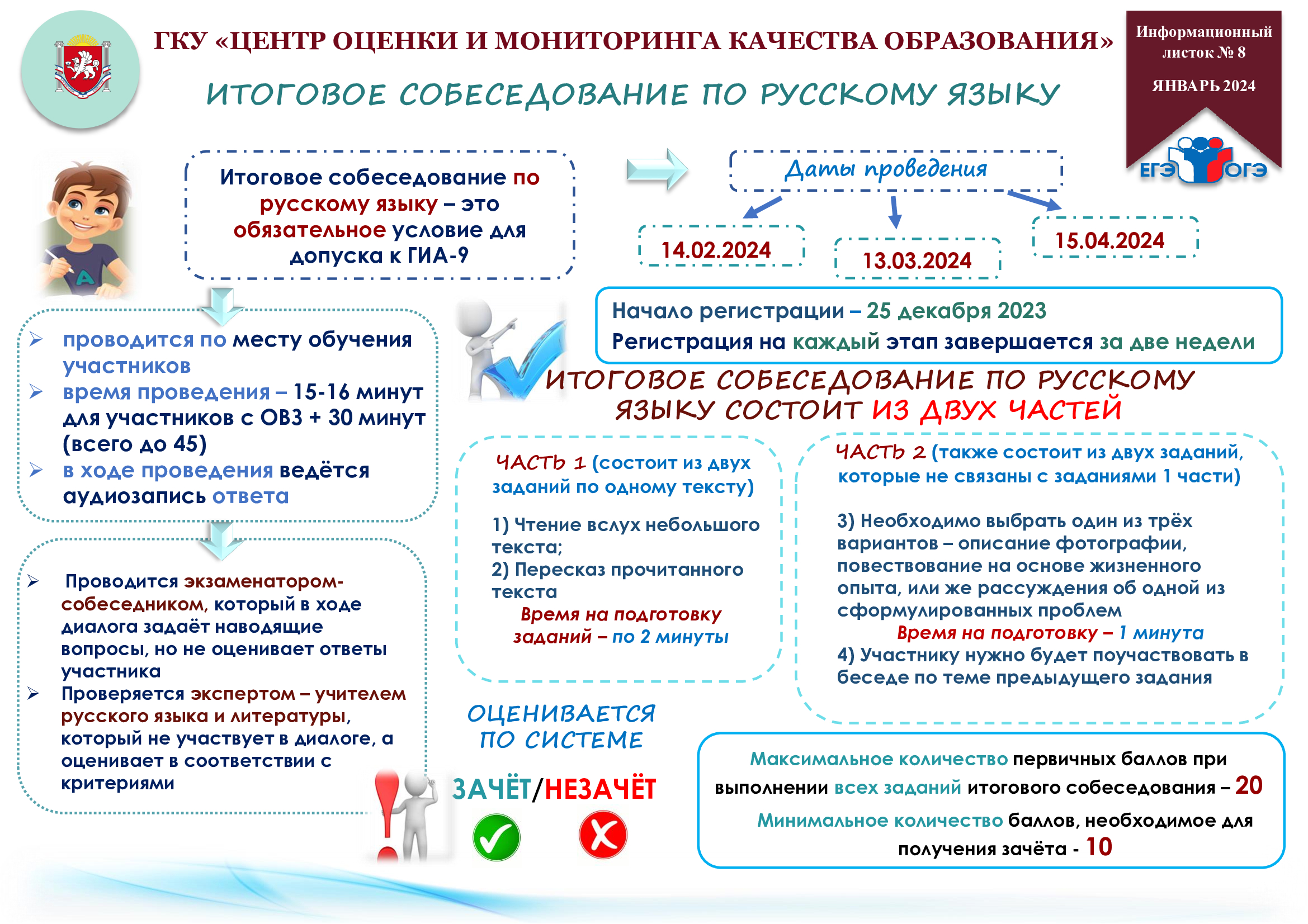 Итоговое собеседование начинается в 09.00 по местному времени.